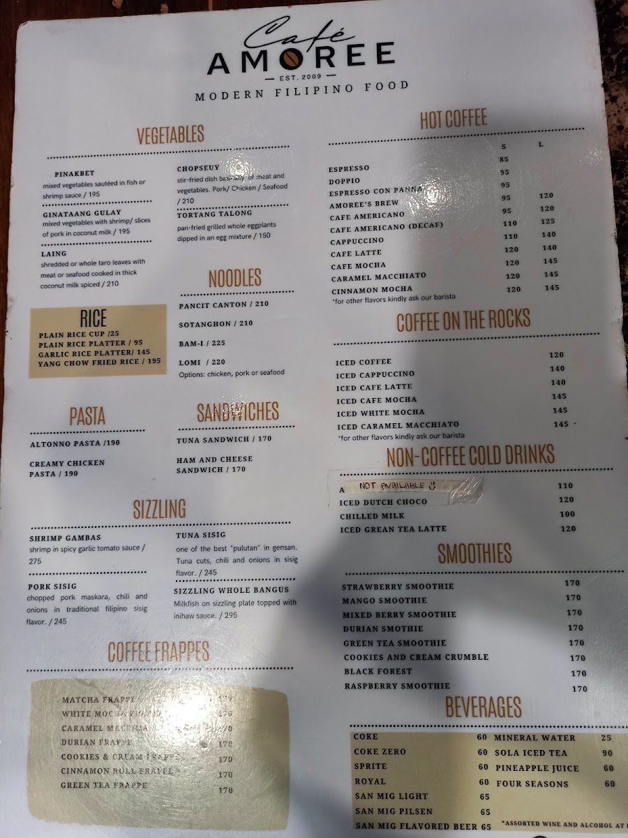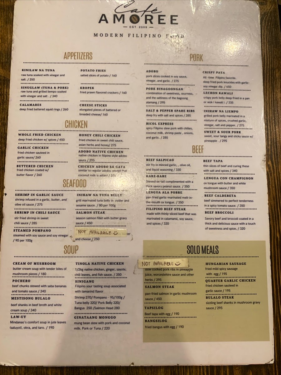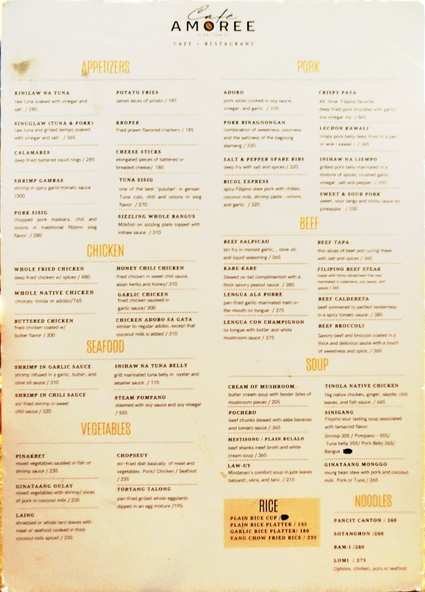 Cafe Amoree also tantalizes with crispy delights like Crispy Pata and the savory-sweet Binagoongan, which highlight the café's dedication to traditional recipes. Complement your meal with a cup of their renowned coffee, praised by guests for its exceptional quality. Overall, Cafe Amoree offers a warm ambiance paired with a diverse menu, making it an exceptional spot for both casual meals and special gatherings.